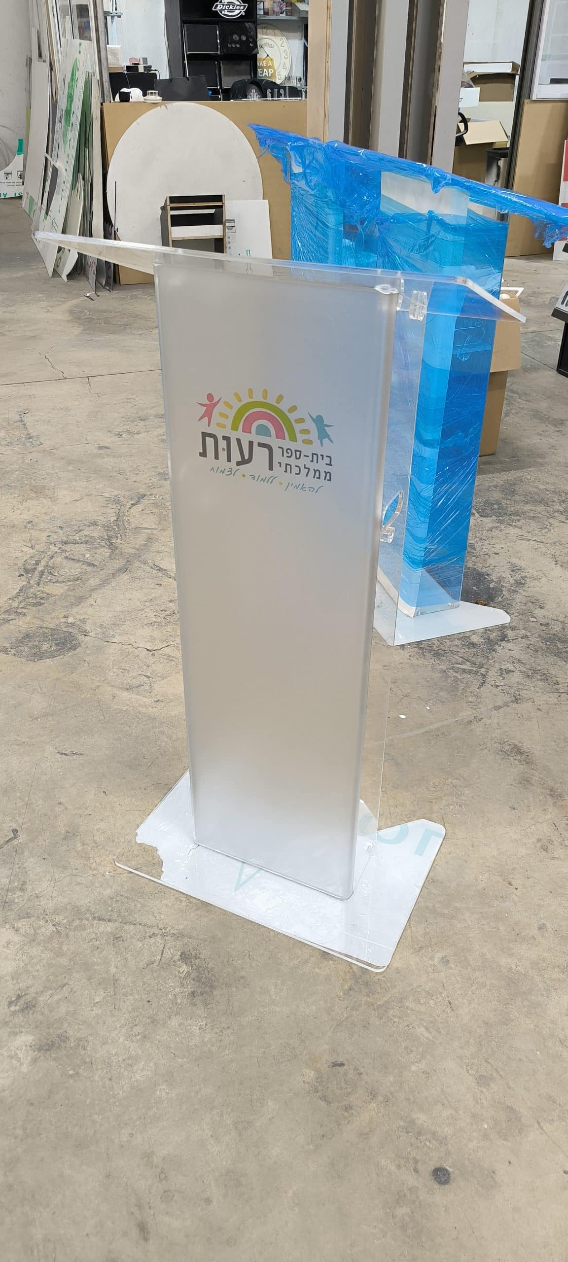 דוכן נואמים עבור חברת "קרן קיימת לישראל". פודיום לנואמים עשוי פרספקס בהתאמה אישית לפי בקשת הלקוח. חברת...