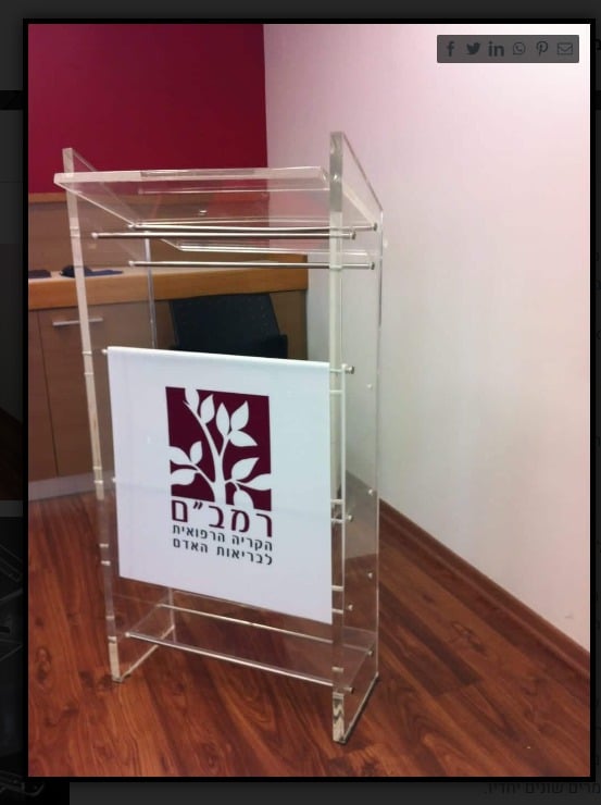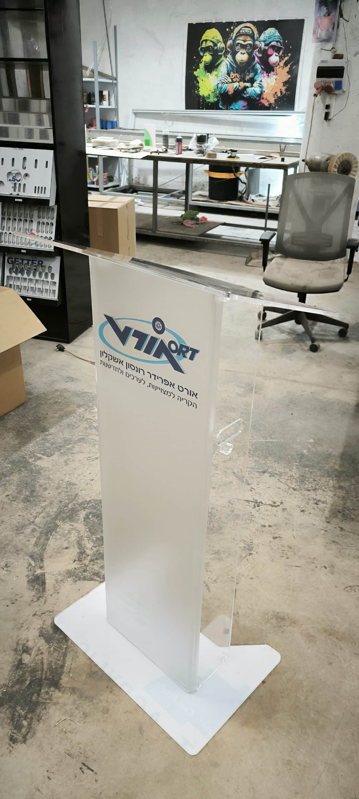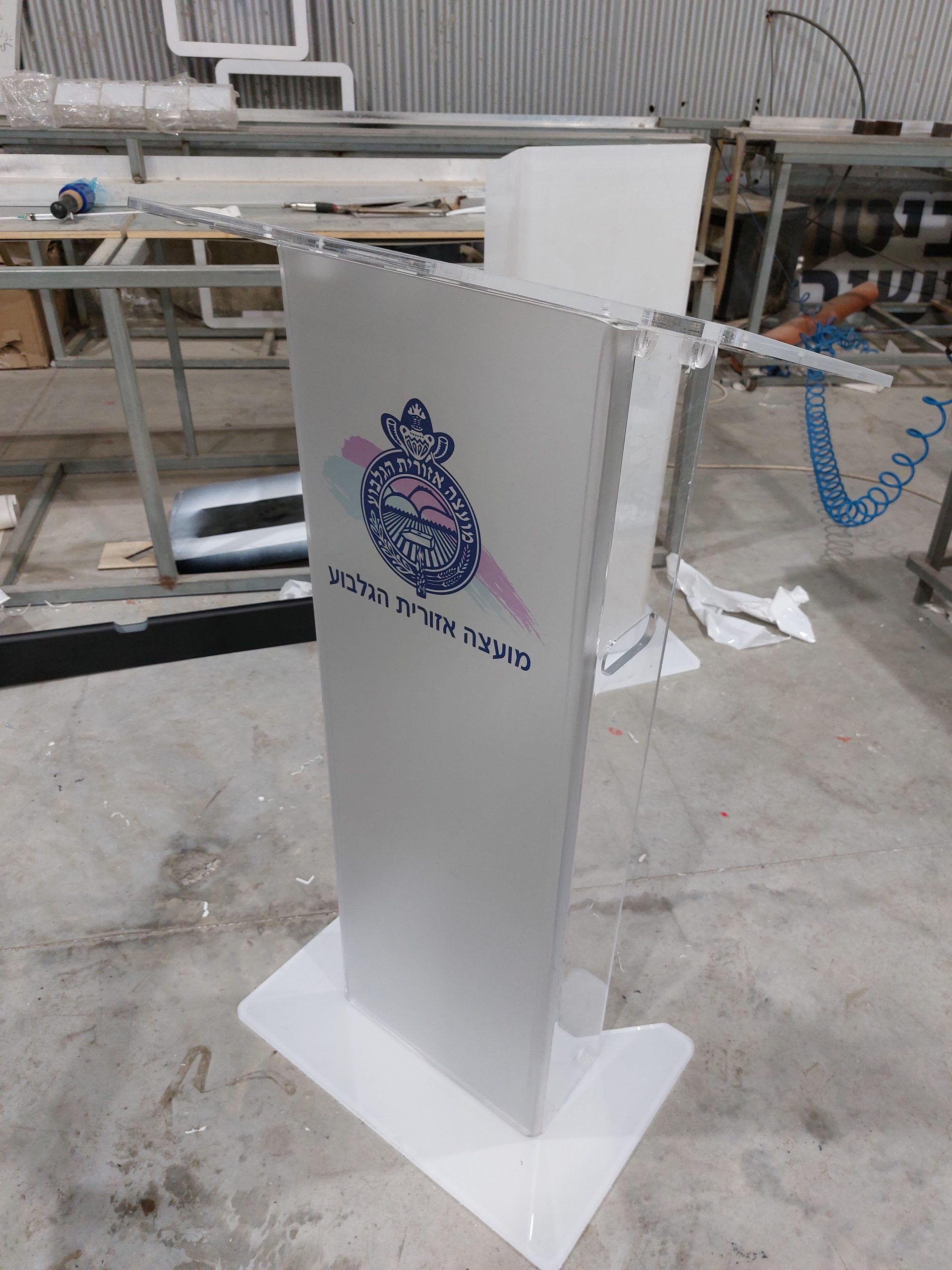 חברת סופר פלסט הינה חברה מקצועית במיוחד אשר אחת מההתמחויות שלה היא דוכנים להרצאות לכנסים ואירועים שונים. אנו מאמינים שחברתנו בין הטובות והאיכותיות בשוק עם שירות ומקצועיות גבוהה מאוד , ועל זה יש לנו משובים מלקוחות רבים משנים של עבודה. סופר פלסט מאפשרת הוספת לוגו לדוכן ואף שילוב של חומרים שונים יחדיו.