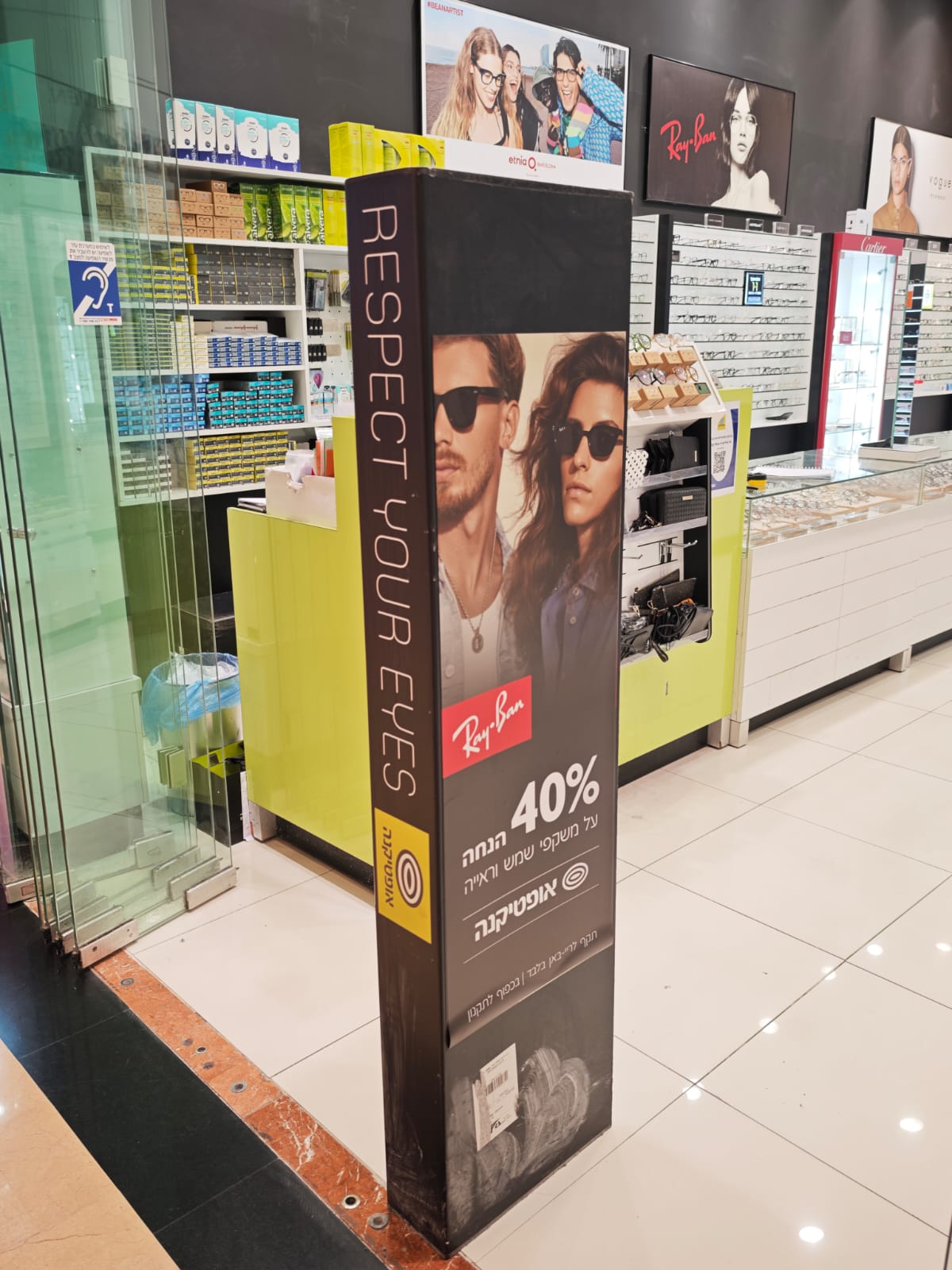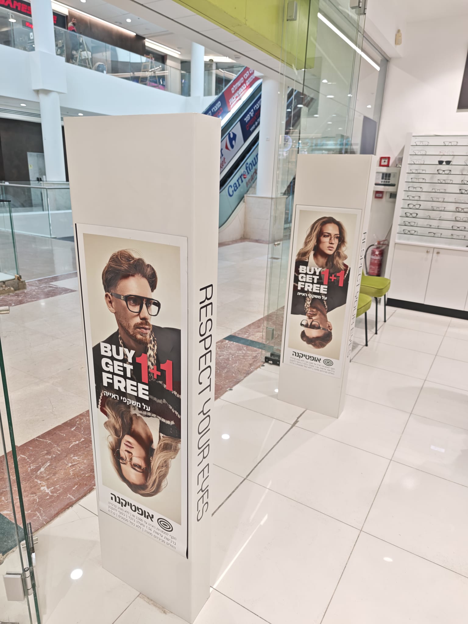 פרויקט מיתוג עבור אופטיקנה סניף קניון רננים. הדפסה באיכות גבוהה על לוחות פרספקס ומתקני תצוגה מעוצבים ומושכים...